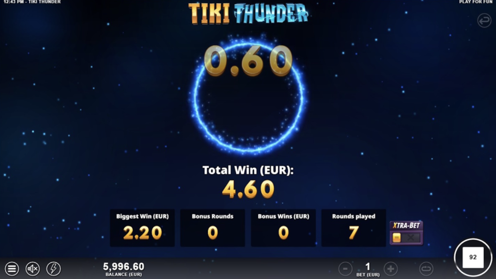 El rango de apuestas en Tiki Thunder es bastante flexible, permitiendo a los jugadores apostar desde 0.20€ hasta 60€ por giro . Esta amplitud asegura que tanto los jugadores ocasionales con presupuestos más ajustados como los grandes apostadores que buscan emociones fuertes y giros de alto valor puedan disfrutar del juego y adaptarse a sus estrategias y límites.