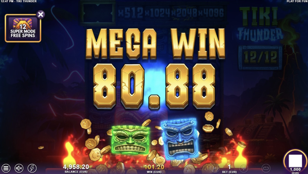 Este slot presenta alta volatilidad . Esto significa que, si bien las ganancias pueden no ocurrir con la frecuencia de los juegos de baja volatilidad, cuando ocurren, tienden a ser de mayor tamaño. Los jugadores que disfrutan de la emoción de perseguir grandes premios y tienen la paciencia para esperar esas ráfagas de suerte encontrarán Tiki Thunder particularmente gratificante. La alta volatilidad se alinea perfectamente con la temática de “erupción” y acción explosiva del juego, prometiendo momentos de alta tensión y recompensa.
