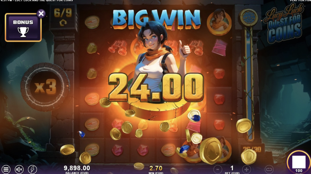 “Lucy Luck and the Quest for Coins es la aventura más repleta de funciones de Lucy hasta la fecha, una tragamonedas de clústeres llena de acción donde cada victoria rompe capas de bloques para descubrir espacios secretos y cofres llenos de tesoros debajo.” — Slotmill