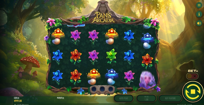 La estructura del juego es única y atractiva. Pan’s Arcadia se presenta en una configuración de rodillos de 6×3 con 13 líneas de pago fijas, ofreciendo una dinámica de juego distinta a las tragamonedas convencionales. Esta disposición crea oportunidades interesantes para formar combinaciones ganadoras mientras te sumerges en una atmósfera etérea y mágica.