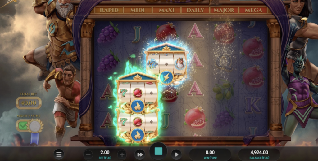 - Funciones Especiales: Mighty Spins, Olympus Respin, Daily Jackpots